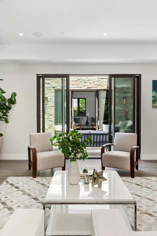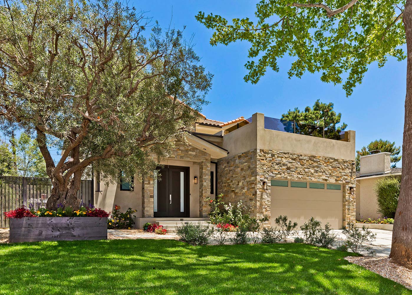The soul of this home is set in tranquility. Share the joy in this beautifully crafted, custom modern Mediterranean home with multiple expansive indoor/outdoor entertaining spaces for family gatherings. An open gourmet kitchen w/large island and chef's appliances, flows to a bright family rm & outdoor living rm or a peaceful backyard. Entertain your most discriminating guests, while offering fine selection of wine from your personal cellar, whether enjoying a meal in the large formal dining area, or an evening of gathering in the spacious stone courtyard. Retreat to your private master suite for a getaway in oversized steam shower or relax in private tucked away balcony.